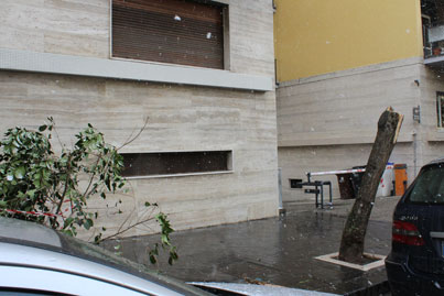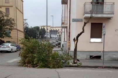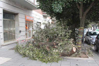 Anche al rione Ferrovia, nei pressi della Stazione Centrale, è crollato un albero di grosso fusto, stavolta si è trattato di un leccio della famiglia della querce.