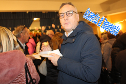 A questo punto, ultimata la funzione religiosa, buona parte dei fedeli, su invito di Guarino, si sono portati nella sala teatro dove era stato allestito un capace buffet (nelle foto in basso dalla ventinove alla trentadue).