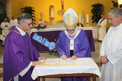 La Santa Messa è cominciata con la lettura, da parte di don Maurizio Sperandeo, del decreto di nomina firmato dall'arcivescovo e qui abbiamo appreso, tra l'altro, che don Pietro è nativo di Benevento è che ha la stessa età di monsignor Accrocca essendo nato nel 1959.