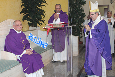 Quindi ha ringraziato i predecessori di don Pietro, monsignor Ilario Gallucci, monsignor Nicola Cocchiarella e monsignor Pasquale Maria Mainolfi e qui c'è stata una gaffe perché li ha accomunati tutti nel regno dei Cieli poi si è subito corretto dicendo che don Nicola è qui con noi ed è intenzionato a rimanerci a lungo.