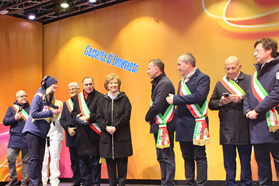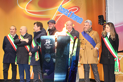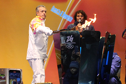 Una consistente folla di persone ha accolto l'arrivo dell'ultimo tedoforo, Carlo Mazzone, che ha acceso il tripode olimpico posto sul palco alzato dinanzi al Palazzo del Governo.