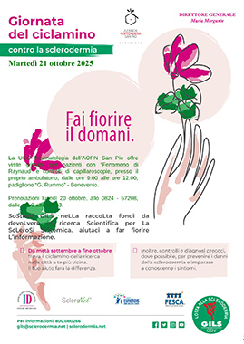 Martedi' prossimo, 21 ottobre, l'Azienda Ospedaliera "San Pio" di Benevento aderisce alla campagna di sensibilizzazione nazionale sulla SclerodermiaSi tratta di una malattia multiorgano particolarmente invalidante che colpisce prevalentemente il genere femminile e che comporta la necessitaa' di cure e assistenza continuaRedazionen.173771 ven 17-10-2025 12:42
